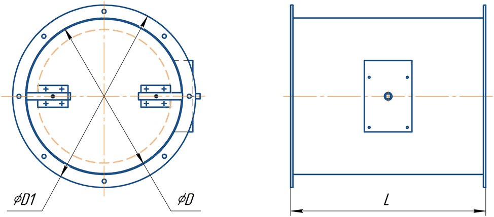 Ø125 - круглое сечение, типоразмер по присоед. диаметру 125мм.