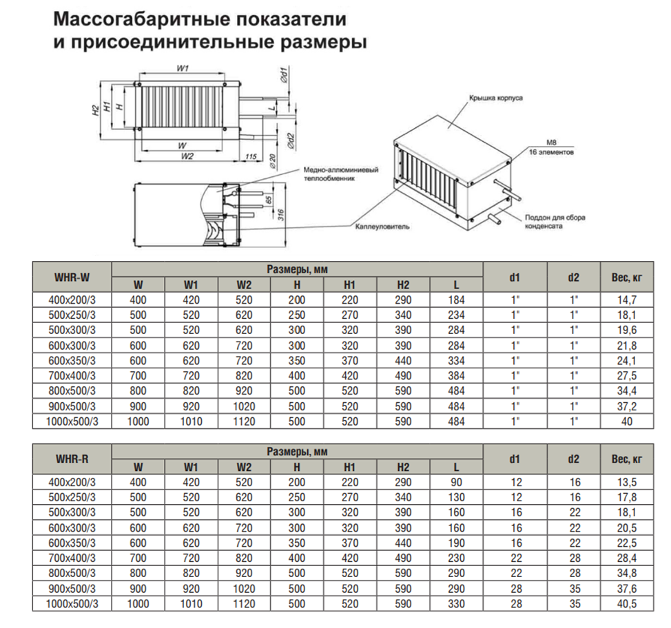 Корпуса воздухоохладителей изготовлены из оцинкованного стального листа.Теплообменник выполнен из медных труб с алюминиевым оребрением. Стандартно имеет трехрядное исполнение. Шаг оребрения составляет 2,1 мм (вместо общепринятого для наборных систем вентиляции 2,5 мм). Уменьшенный шаг позволяет существенно увеличить теплоотдачу и оптимизировать массогабаритные показатели при незначительном увеличении аэродинамического сопротивления теплообменника. Для увеличения теплоотдачи трубы механически расширены и тем самым жестко соединены с оребрением. Пайка калачей теплообменника осуществляется припоем с 2 % содержанием серебра, что обеспечивает высокое качество паяных деталей.