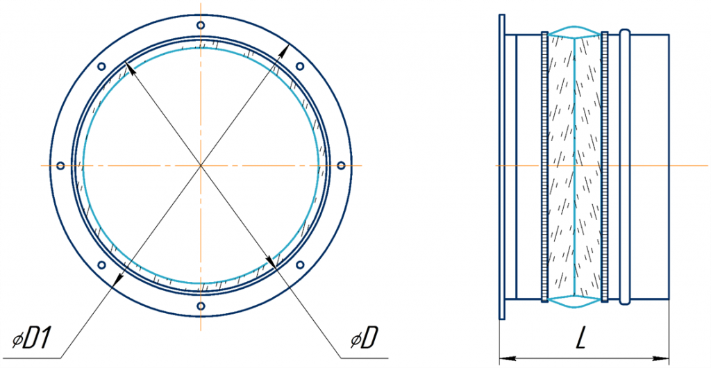 Диаметр ØD – соответствует основным присоединительным размерам канальных вентиляторов круглого сечения в пределах присоединительных диаметров – от D=160мм до D=1250мм.