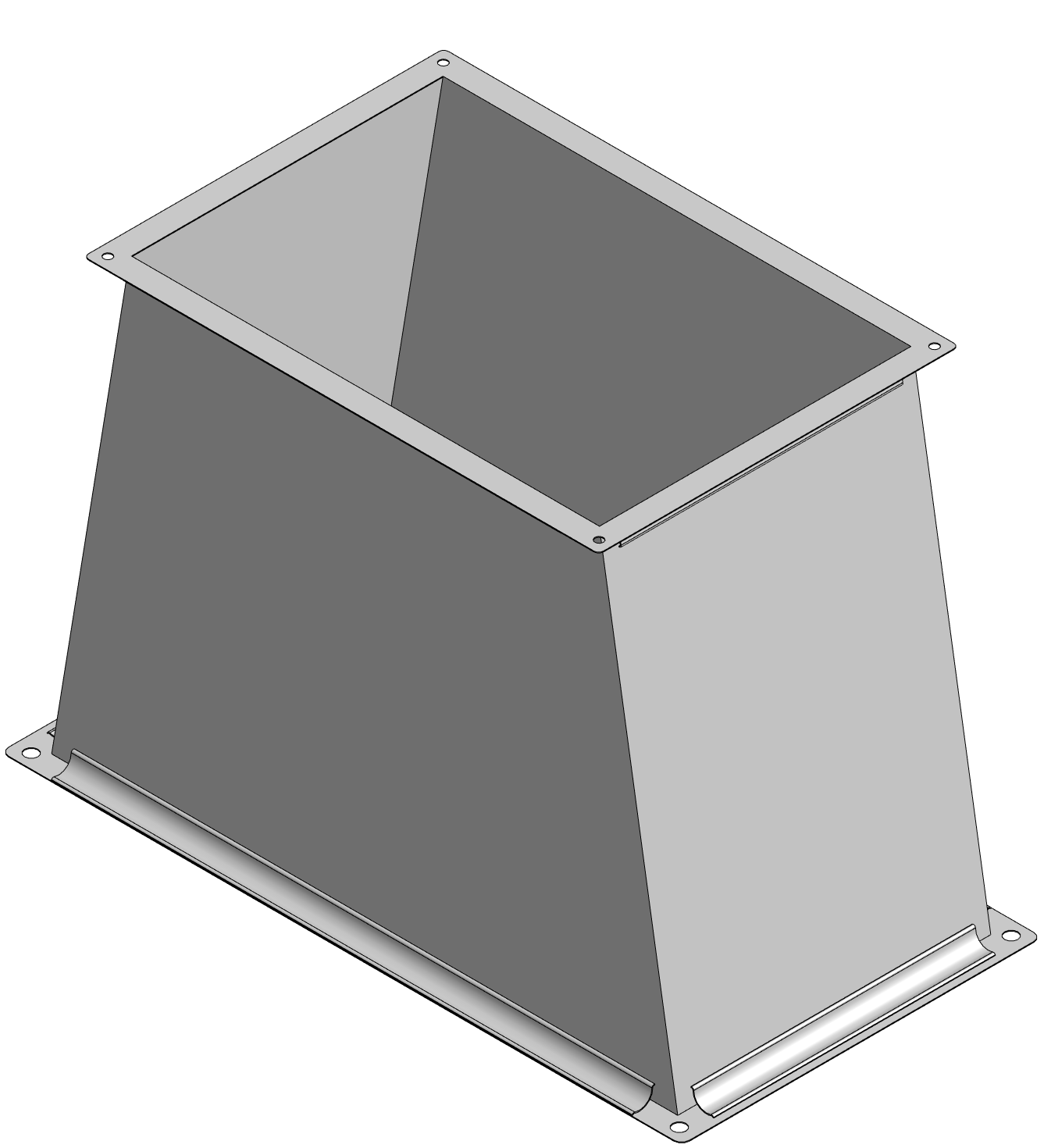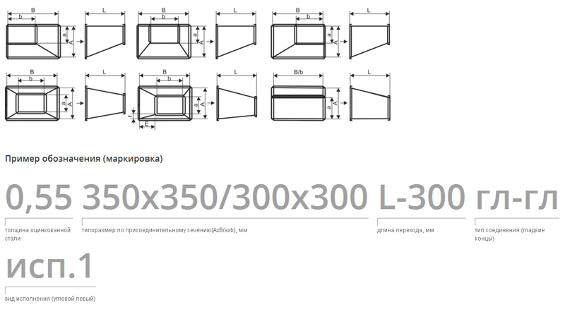 Прямоугольный переход - элемент сетевой вентиляции предназначен для герметичного соединения прямоугольных воздуховодов с различными размерами, то есть переходы с прямоугольного воздуховода на прямоугольный большего или меньшего размера.